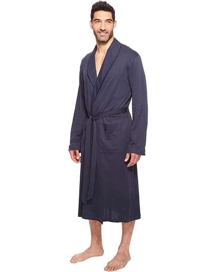 - Soft jersey knit robe offers a comfortable wear perfect for a cozy Saturday morning.