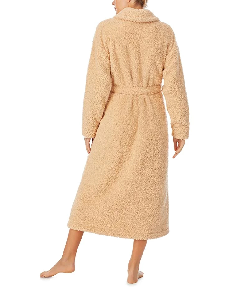 - Style your look in the comfy and soft Sanctuaryยฎ 50″ Long Sherpa Robe with a tie-up front.