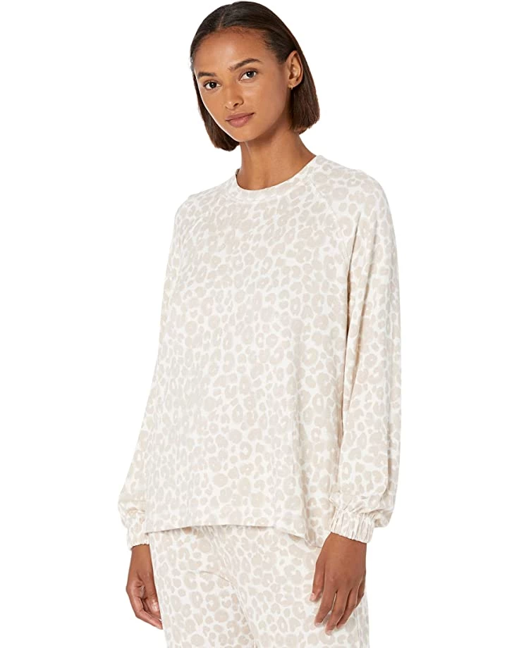 - Top with a crew neckline and long raglan sleeves with elasticized cuffs.